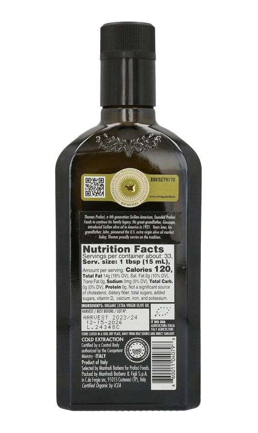 Profaci Sicilian Organic Extra Virgin Olive Oil – 100% Biancolilla Olives